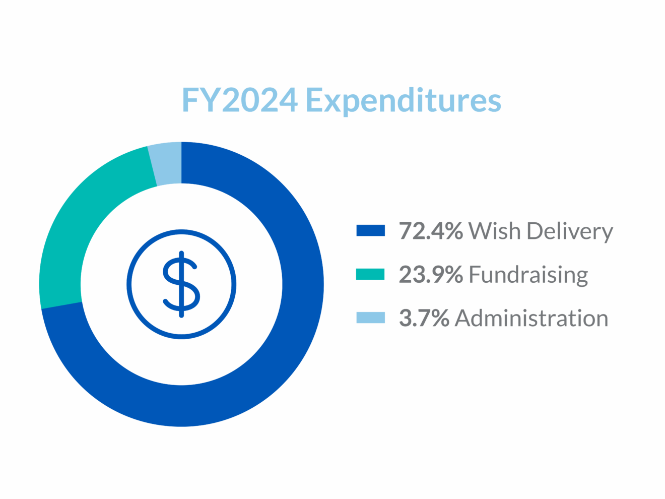 We are grateful for our supporters and strong reserves to help us grant a growing number of wishes across the country. In 2024, we drew on our reserves to grant more wishes than ever, and our plan is to strategically draw on reserves for the next few years as we continue to build the fundraising capacity to grant 2,500 wishes annually.