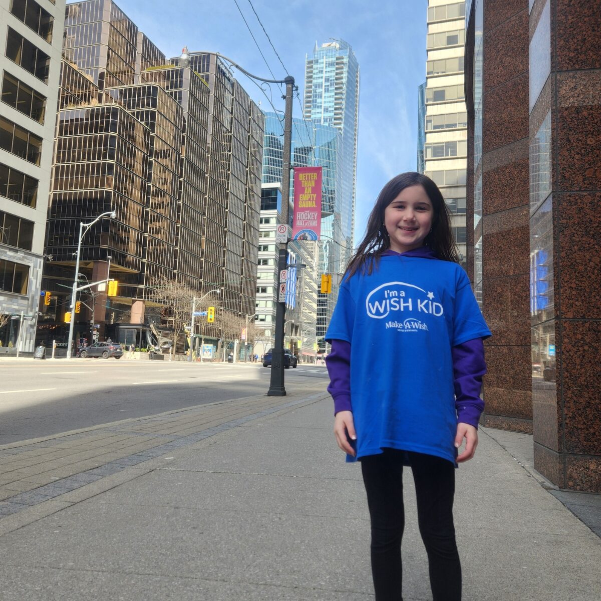 Now at eight years old, Bella is monitored closely by her medical team. She has more muscle growing around her heart, which is causing her valves to work improperly. Although she has grown up in the Maritimes, Toronto holds a special place in her heart. She dreamed of going to visit her birthplace. While on her wish trip, she got to see her favourite hockey team play, marking her first national hockey game. “Spending time together stress free was exactly what we needed,” Sarah shared. “Everyday Bella woke up wanting to chase fun and that’s what we went there for.” Bella and her family will forever cherish the memories they made together and the fun they had in Toronto.
