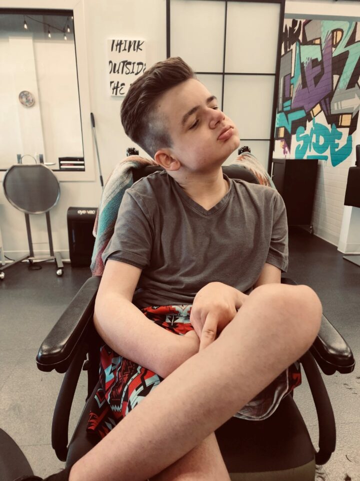 Brock was diagnosed with a nervous system disorder and lives with a host of other medical challenges. He depends on a wheelchair for mobility and a gastrostomy tube for hydration. His favourite foods are fish, fries and gravy, avocado and Saskatoon berry pie. Brock doesn’t go very far without his stuffed giraffe, and in school, his learning preference is auditory, tactile, high contrast visuals, and engaging with hands-on materials.