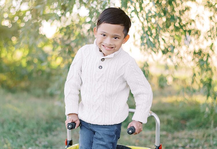 Wesley’s medical journey began the day he was born. Arriving at just 25 weeks, he spent months in the NICU after a brain bleed which led to a condition where his cerebrospinal fluid pools in his brain’s ventricles instead of circulating throughout his body. Eventually he was diagnosed with a nervous system disorder. He has since undergone seven brain surgeries and relies on a shunt to help drain excess fluid. He uses a wheelchair and walker, but his determination is undeniable. Wesley works hard in physiotherapy because he wants to be strong and as independent as he can be.