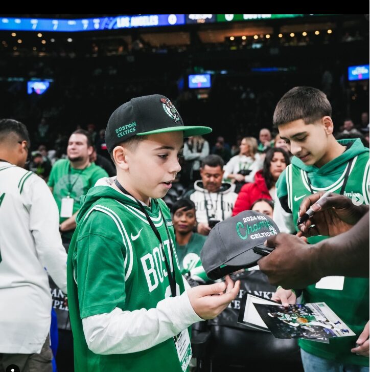 Mason, 12, traveled to watch his favourite team play, the NBA Champion Boston Celtics.