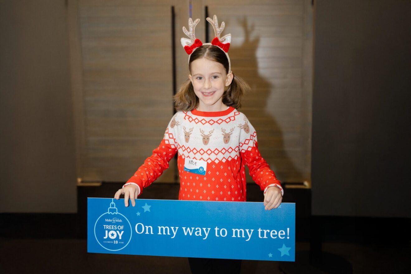 Alice recently attended our Trees of Joy event in Toronto, where she was gifted a traditional holiday tree in her favourite colours: blue, purple and pink!