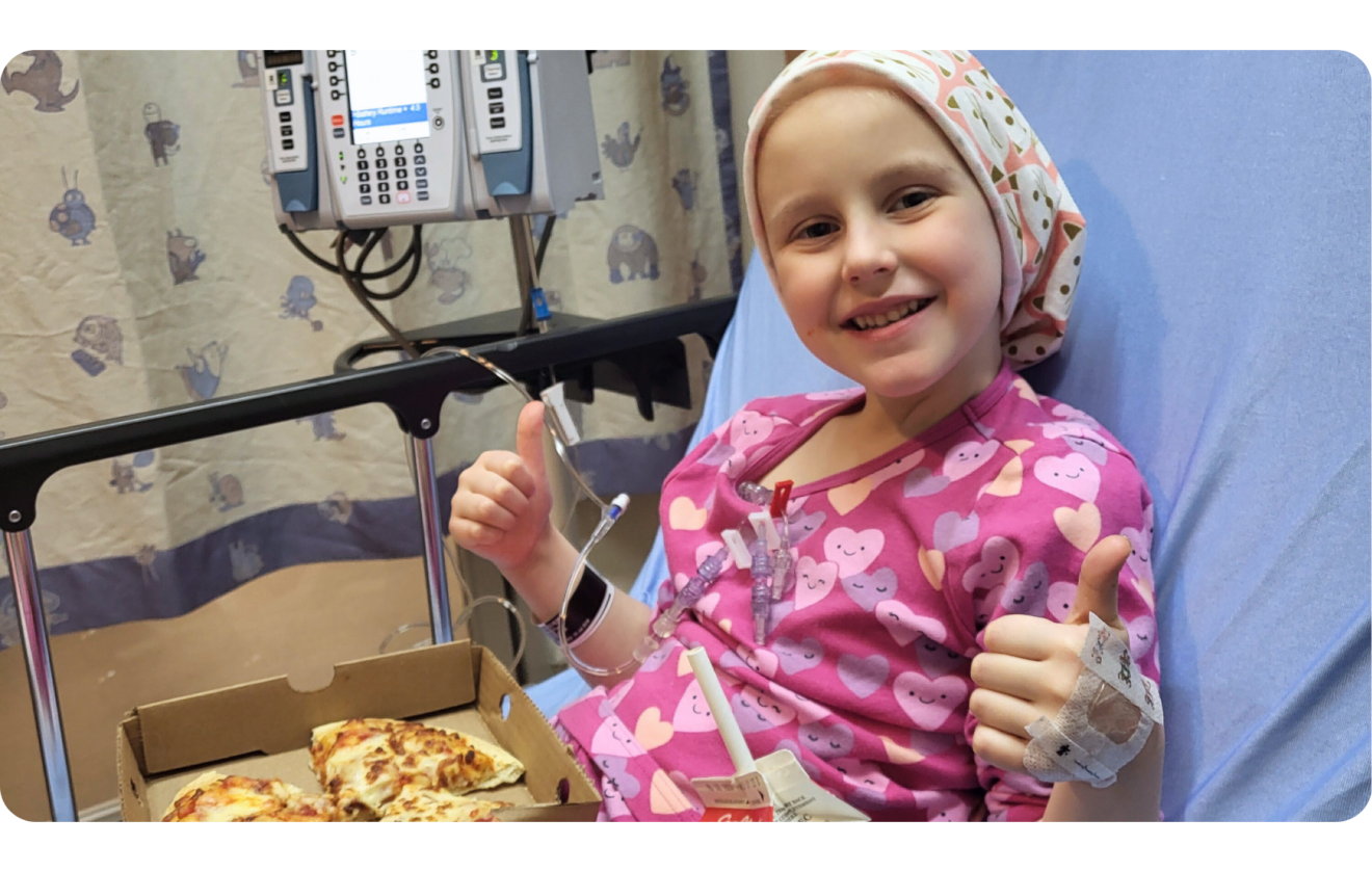 Alice began treatment in January 2024, starting the new year with a PICC (peripherally inserted central catheter) line insertion and a long road ahead. Over the next four months, she endured chemotherapy, countless hospital visits, and the loss of her hair, but never her smile. “She is such a strong, beautiful girl,” Jacquie said. “She missed half of senior kindergarten because of treatment. She was just five years old during all of this.” In April, Alice rang the bell to mark the end of treatment. She remains cancer-free and continues regular checkups.