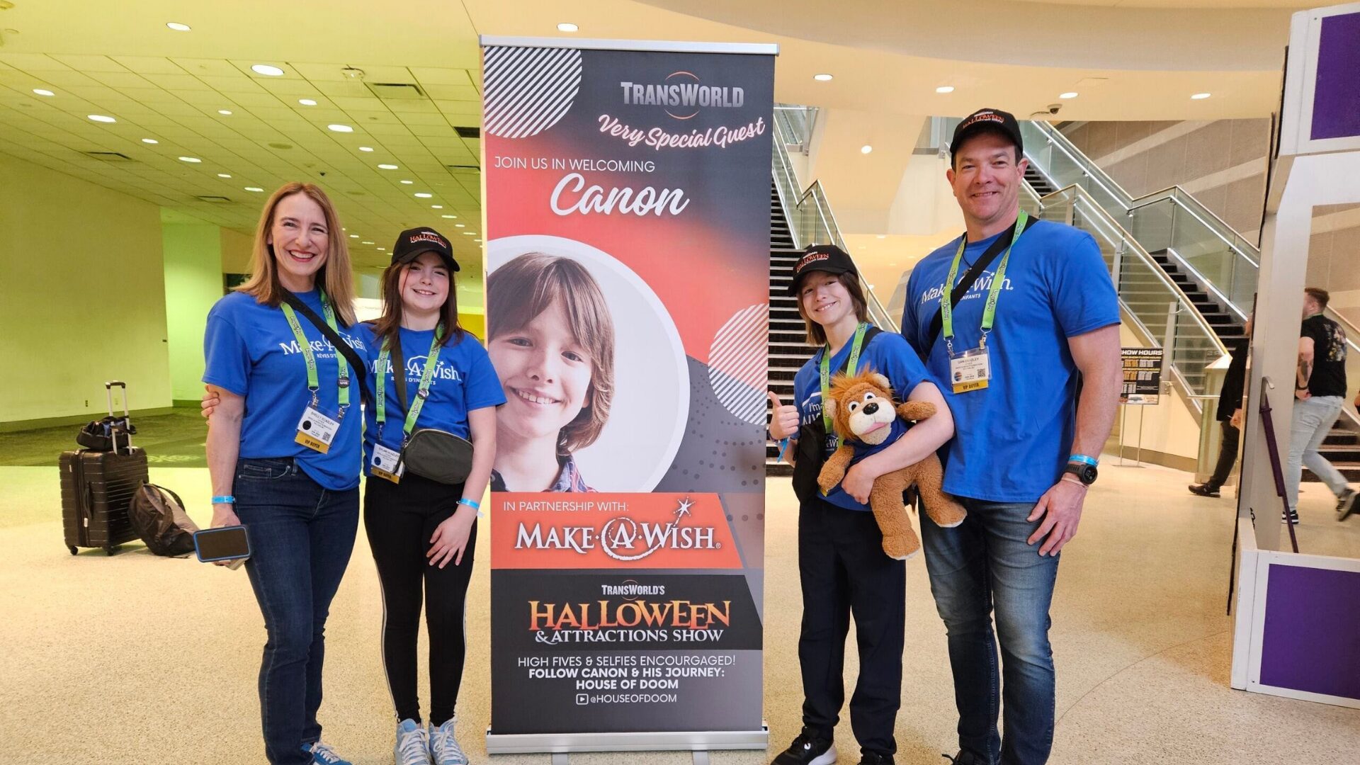 After dreaming of many possibilities, he discovered his most heartfelt wish is to be a YouTuber at the biggest Halloween convention in the world—the TransWorld Halloween & Attractions Show. Canon, alongside his mom, dad, and sister Dylan, travelled down to St. Louis, Missouri to take part in this one-of-a-kind convention.