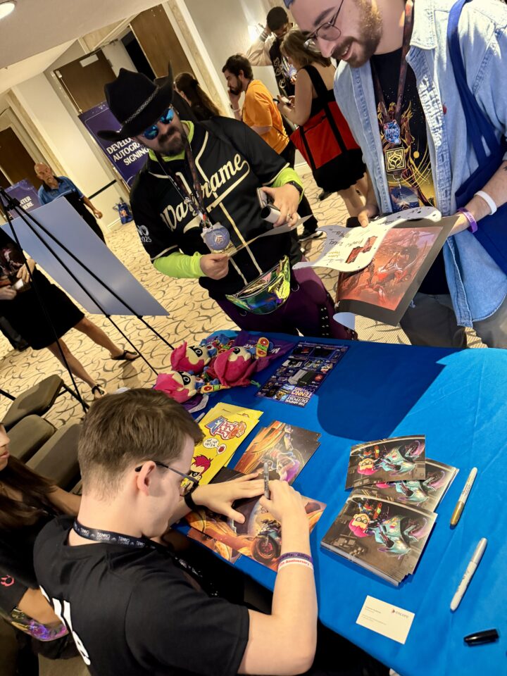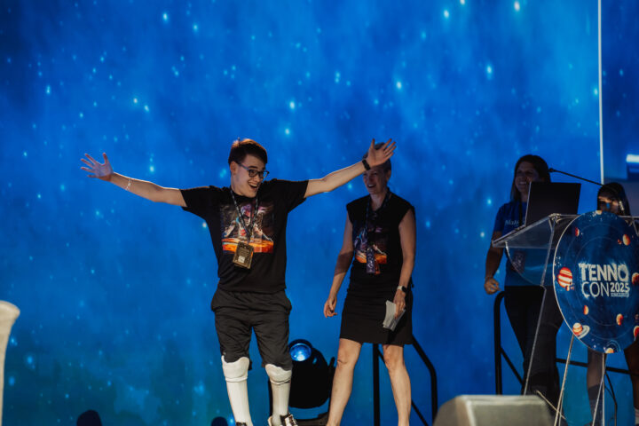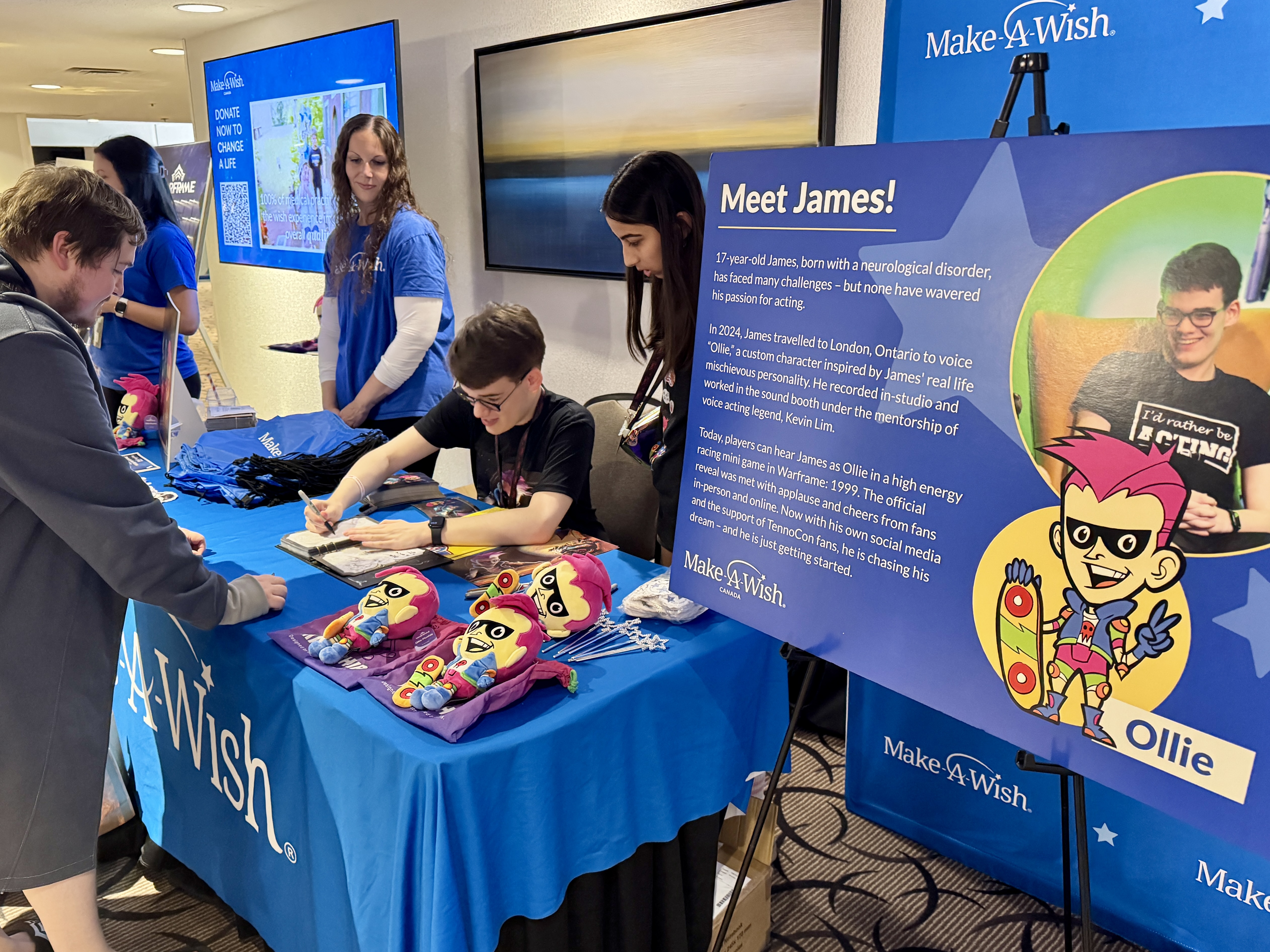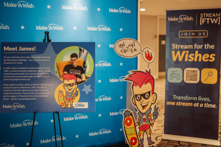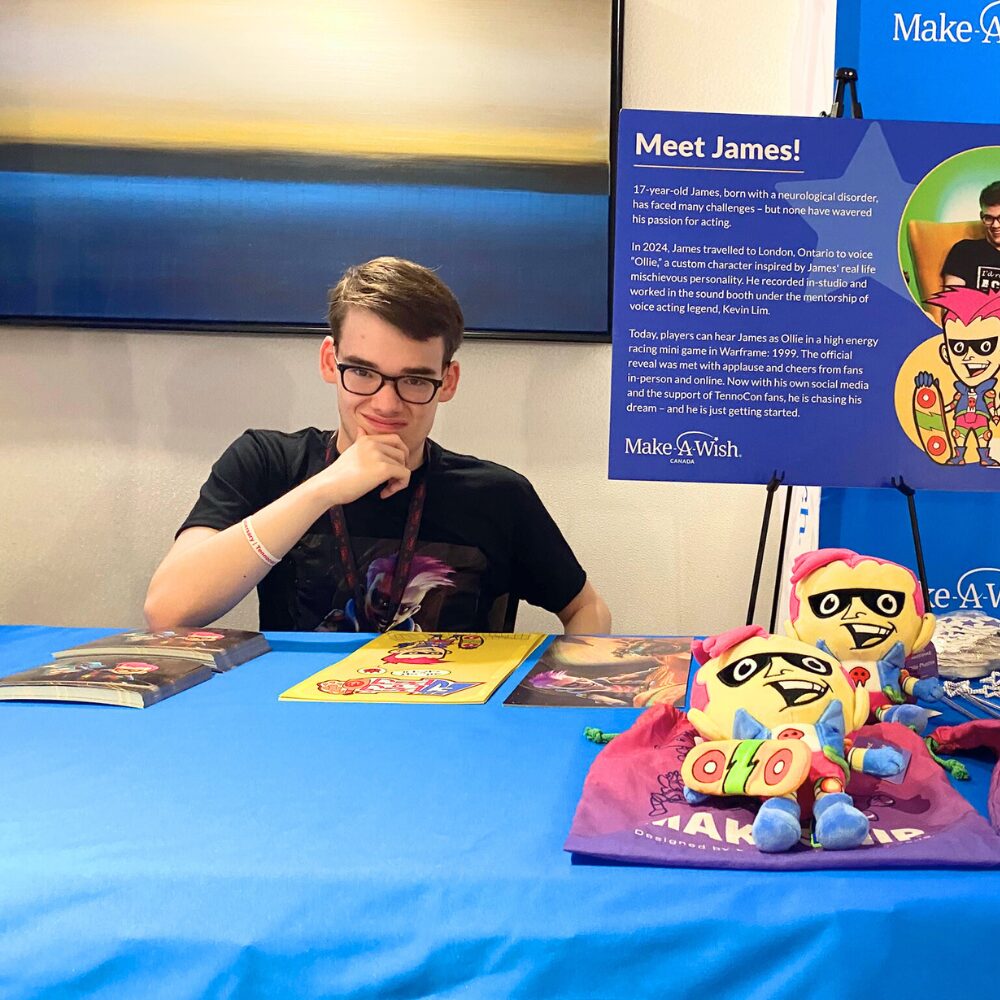 One year later, James and his family returned to TennoCon, this time as special guests. James was invited on stage during the live show, celebrating the one-year anniversary of the launch of Ollie’s Crash Course. He also spent time at the Make-A-Wish booth signing autographs and connecting with fans, many of whom were meeting their favourite character in real life.